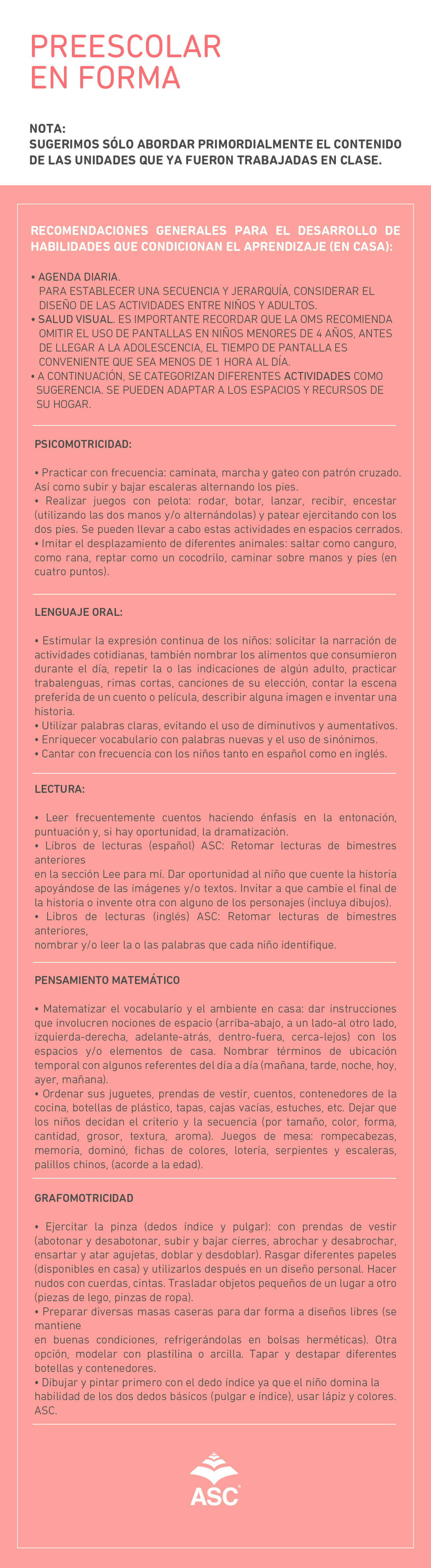 Las guías de trabajo que se proporcionan a continuación son algunas actividades complementarias a nuestros materiales y tienen como objetivo el poder continuar desarrollando habilidades en casa.